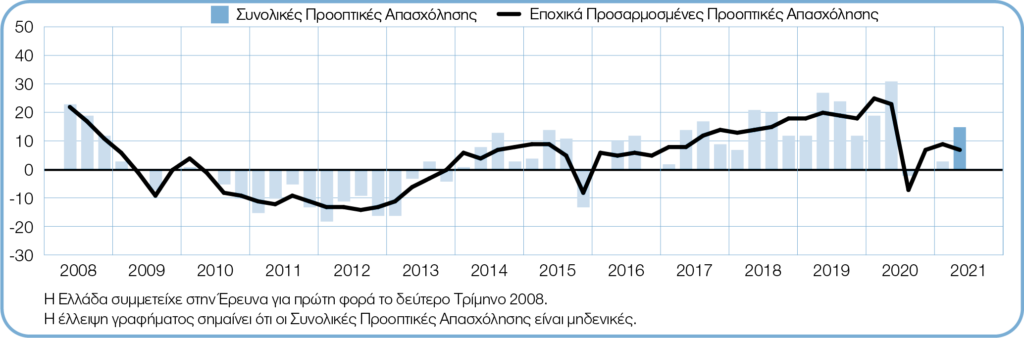 Οι Συνολικές Προοπτικές Απασχόλησης1 για το δεύτερο τρίμηνο του 2021 διαμορφώνονται στο +7%.